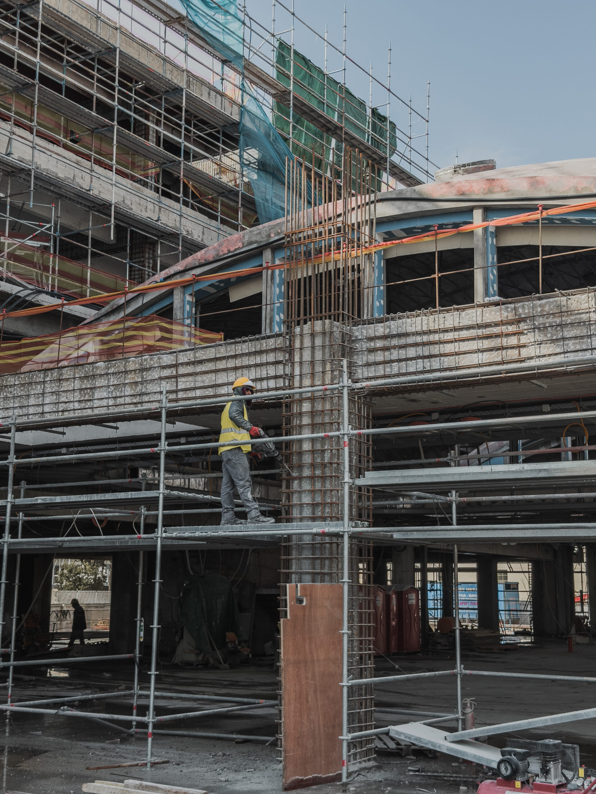 Περιγραφή εργασιών: Μανδύες υποστυλωμάτων, δοκών από εκτοξευόμενο οπλισμένο σκυρόδεμα, αντιδιαβρωτική προστασία οπλισμών και αποκατάσταση διατομών με μη συρρικνούμενα τσιμεντοειδή κονιάματα.